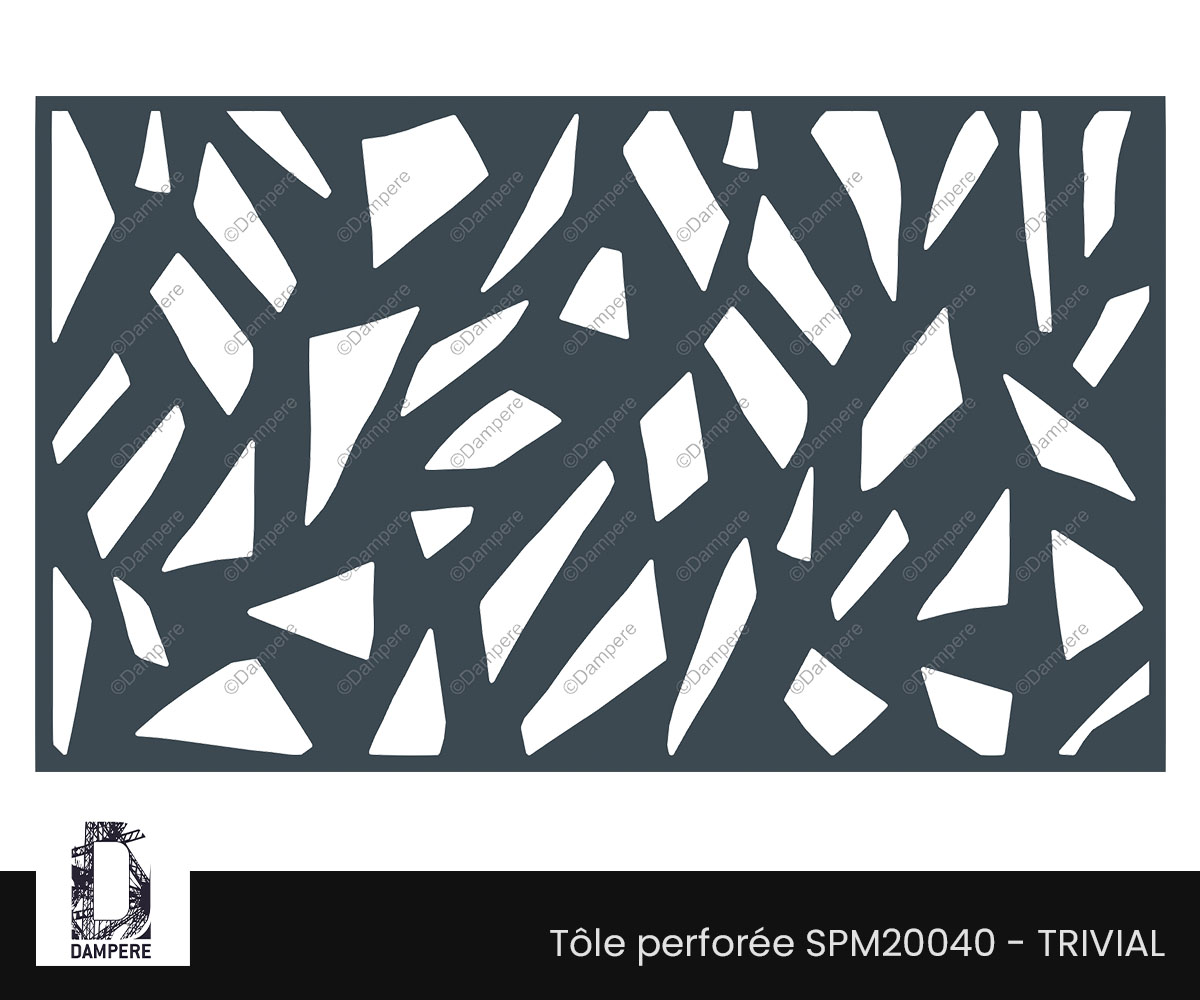 La tôle décorative Trivial DAMPERE, avec son motif déstructuré et asymétrique composé de triangles éclatés, offre une polyvalence qui s'adapte à de nombreux usages architecturaux et urbains. Son design unique, à la fois dynamique et moderne, en fait un choix idéal pour des abris vélos ou des locaux techniques, où l’esthétique joue un rôle aussi important que la fonctionnalité. Le motif asymétrique apporte une touche contemporaine à ces structures utilitaires, tout en préservant une ventilation naturelle et une protection visuelle contre les regards extérieurs. Utilisée dans des clôtures professionnelles, la tôle décorative Trivial allie robustesse et design, offrant une barrière solide et élégante pour des zones industrielles, commerciales ou même résidentielles, tout en préservant l’intimité et la sécurité. Sa capacité à laisser passer la lumière de manière fragmentée en fait également un excellent choix pour des brise-vues dans des espaces publics ou privés, garantissant à la fois intimité et luminosité. L’usage de Trivial se prête également parfaitement à l’habillage de locaux poubelles, transformant un élément souvent négligé en un point focal en esthétique végétale. Grâce à ses perforations irrégulières, elle dissimule efficacement le contenu tout en assurant une circulation d’air indispensable. Qu'il s'agisse de locaux techniques, de zones de services ou d'espaces communs, la tôle Trivial trouve naturellement sa place dans des environnements où l’alliance entre fonctionnalité et décoration est recherchée. En jouant sur la géométrie et les éclats triangulaires, Trivial DAMPERE apporte une signature visuelle forte à tout projet, renforçant l’identité esthétique tout en offrant une protection durable.Le conseil de l'équipe