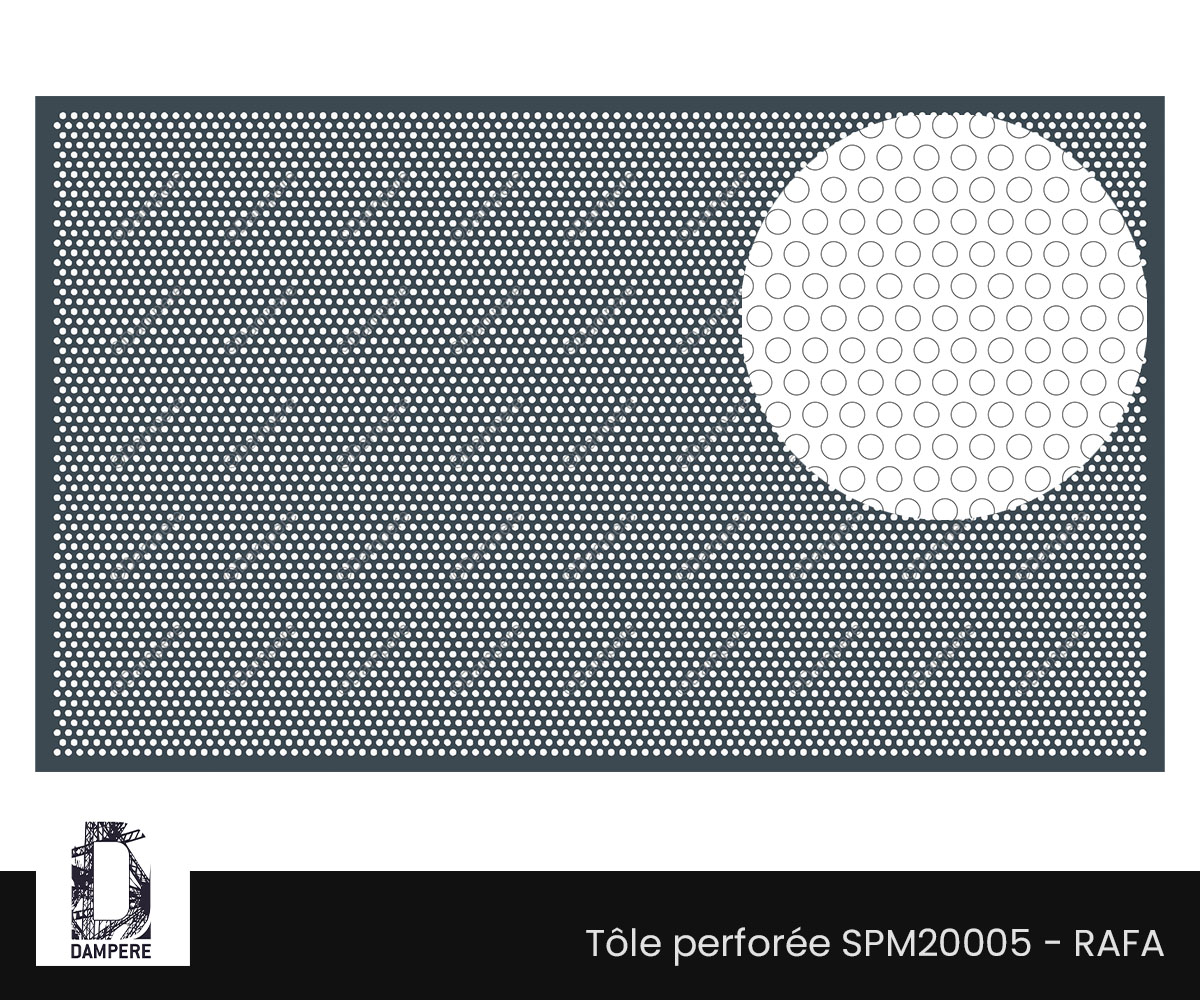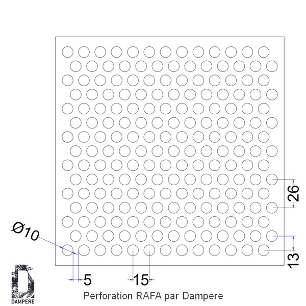 Les trous de la tôle perforée R10T15 ventilation Rafa DAMPERE sont un grand classique de la perforation car ils permettent un grand taux de transparence tout en conservant sa résistance mécanique. S'utilise dans des zones techniques loin du passage du public.Le conseil de l'équipe