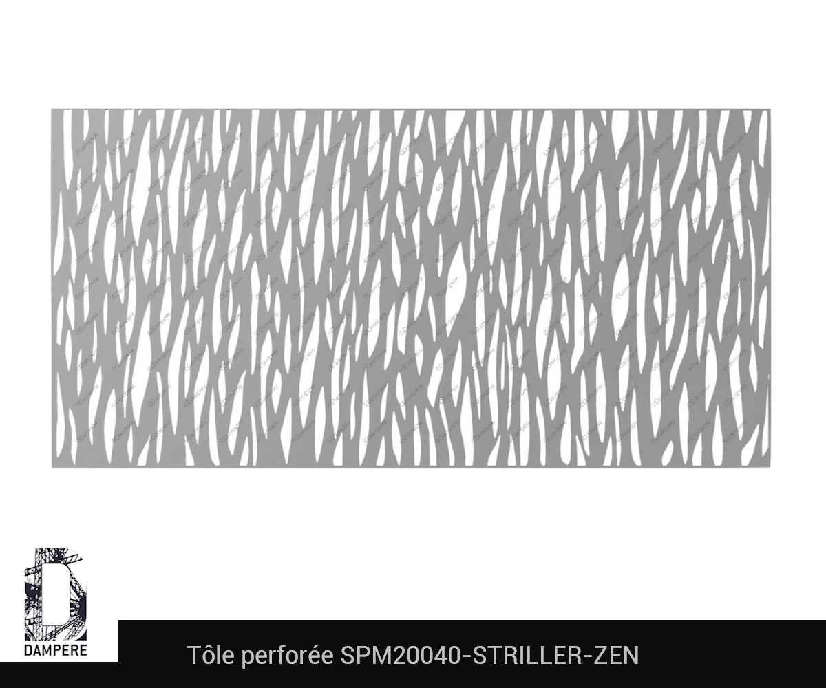 L'usage du motif STRILLER ZEN en panneau de clôture occultant convient sur un panneau en Acier Galvanisé d'épaisseur 2 mm avec pliage sur une hauteur de 180 cm. Cette disposition de la hauteur du poteau et l'entraxe entre panneau de 80 cm donneront une bonne résistance de la clôture occultant, que vous adapterez au scellement béton au sol selon la contrainte de la zone de vent et la sollicitation urbaine de la clôture. Le faible degré de transparence a pour effet d'augmenter la prise au vent, donc ajouter des jambes de force ou scellement plus important dans les zones fortement exposées aux rafales des vents. En cas de besoin, prévoir une peinture anti-graffiti pour faciliter le nettoyage en cas de vandalisme.Détails techniques